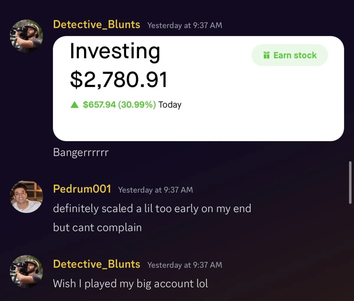After joining, he grew his portfolio by 79.83% in 9 days and sent me this: