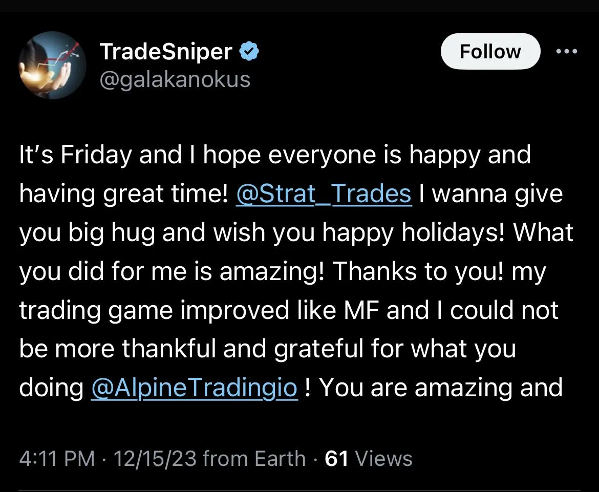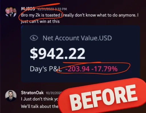 I made $463,328.88 in 2023 trading. I don't need to make more money. I already live the life of my dreams. What I want is to give back to the trading community that has helped me a lot over the past few years. Also, our goal is to destroy all the fake gurus out there that peddle BS programs and only take your money. Lastly, it allows me to become a better trader. On a daily basis I interact with hundreds of people and trade live in front of them. It pushes me to stay sharp and focused. This is why I do what I do.