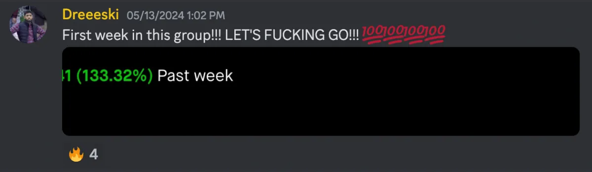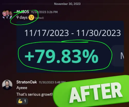 You could start to see positive results as early as within a few trading days. We recommend watching the course in full (3 hours), attending the weekly call and asking all your questions in the Discord community. The most active Discord users are the most successful traders.